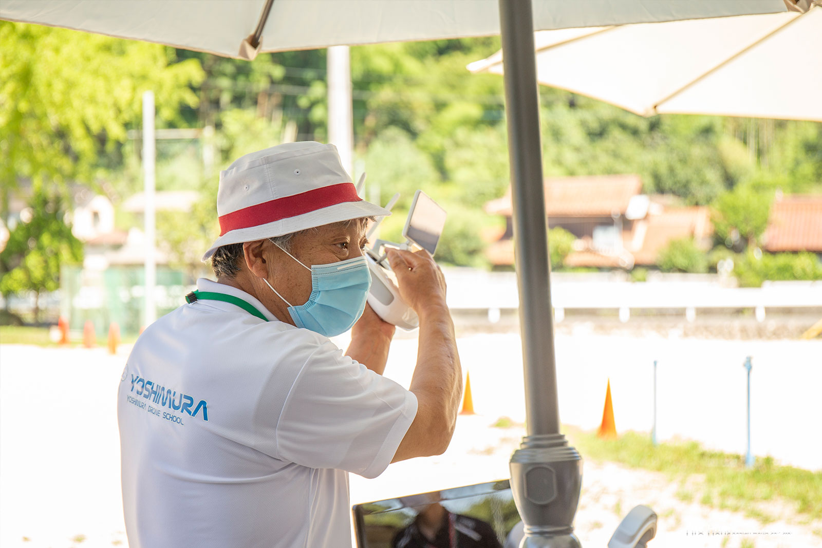 この日は、3日間のうちの3日目の修道会場。ギラギラの猛暑でしたが、ちょうど体育館の影に隠れて開催でき、何とか快適に過ごすことができました。