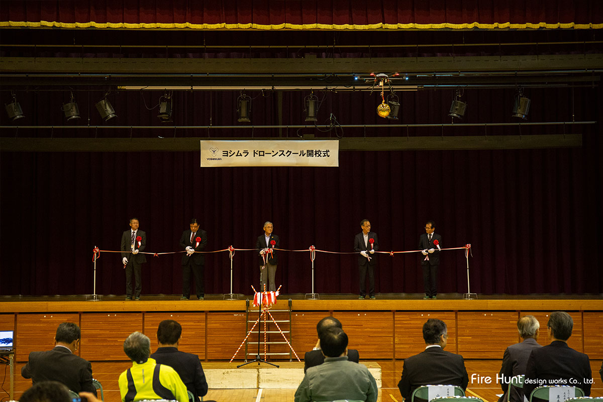 セレモニーのフィナーレは、テープカットに合わせた、ドローンからのくす玉でした。くす玉にサーボモーターを取り付け、リモート操作で見事割れました。